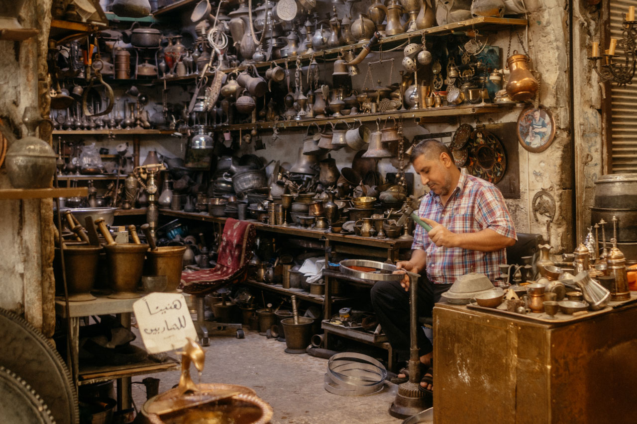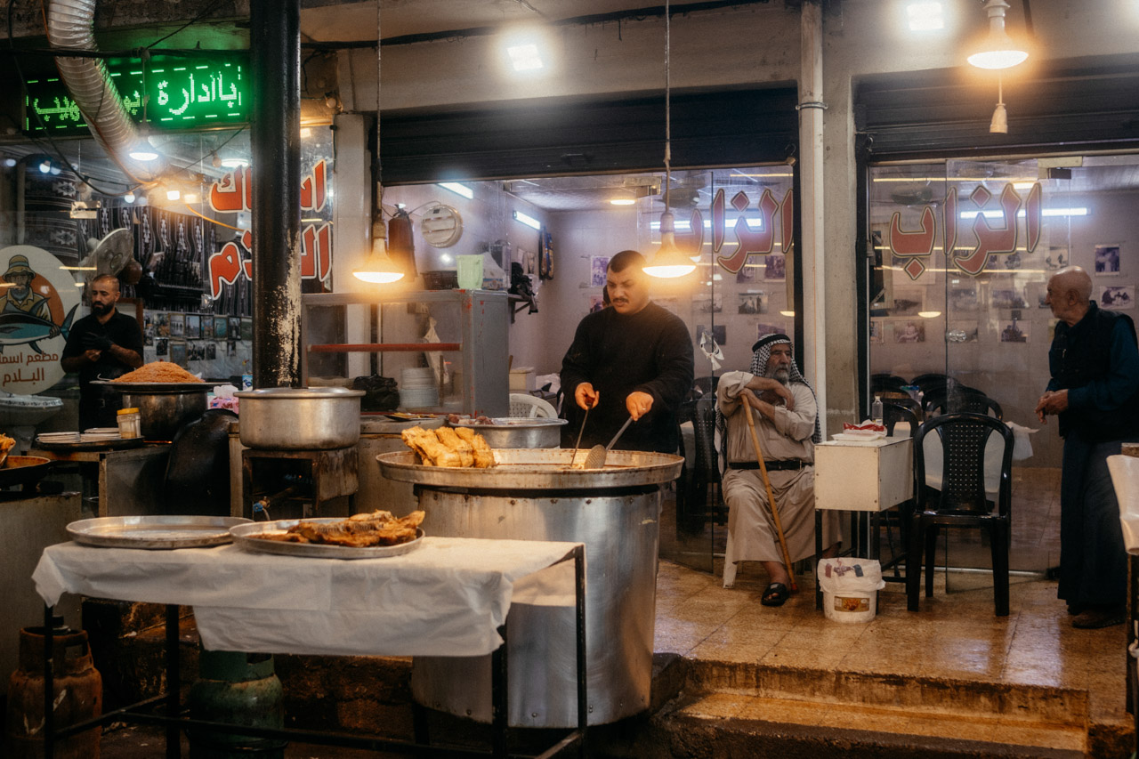 Wir wandern gemeinsam durch den Bazar, einen Ort voll blühendem Leben. Es duftet nach Gewürzen und getrockneten Früchten und direkt daneben liegt die zerstörte Altstadt. Zwei Kontraste so dicht beieinander. Der Bazar ist lebendig, es wird gefeilscht und wir treffen einen Fischverkäufer, der seine Fische im TikTok-Livestream ausnimmt.