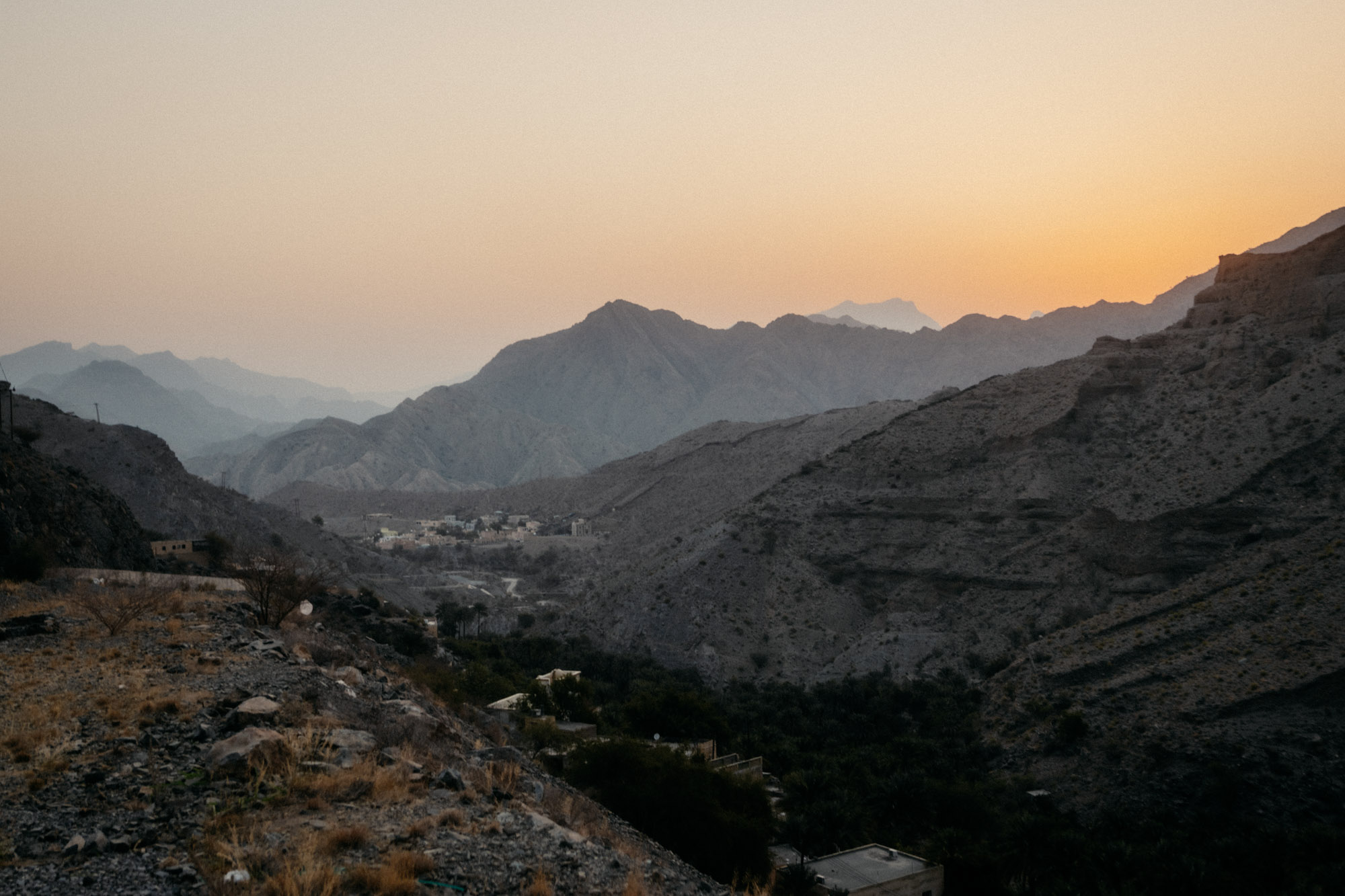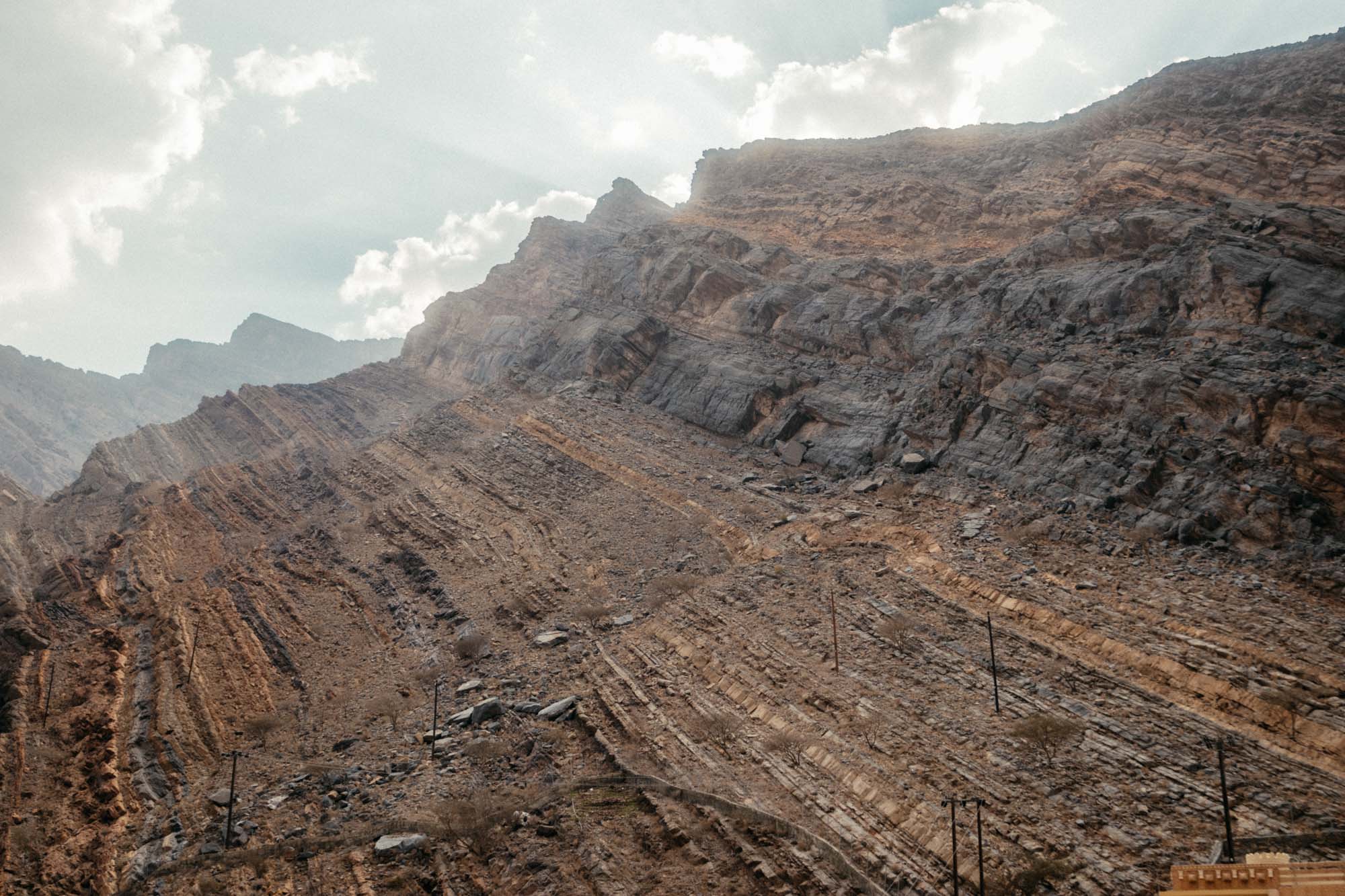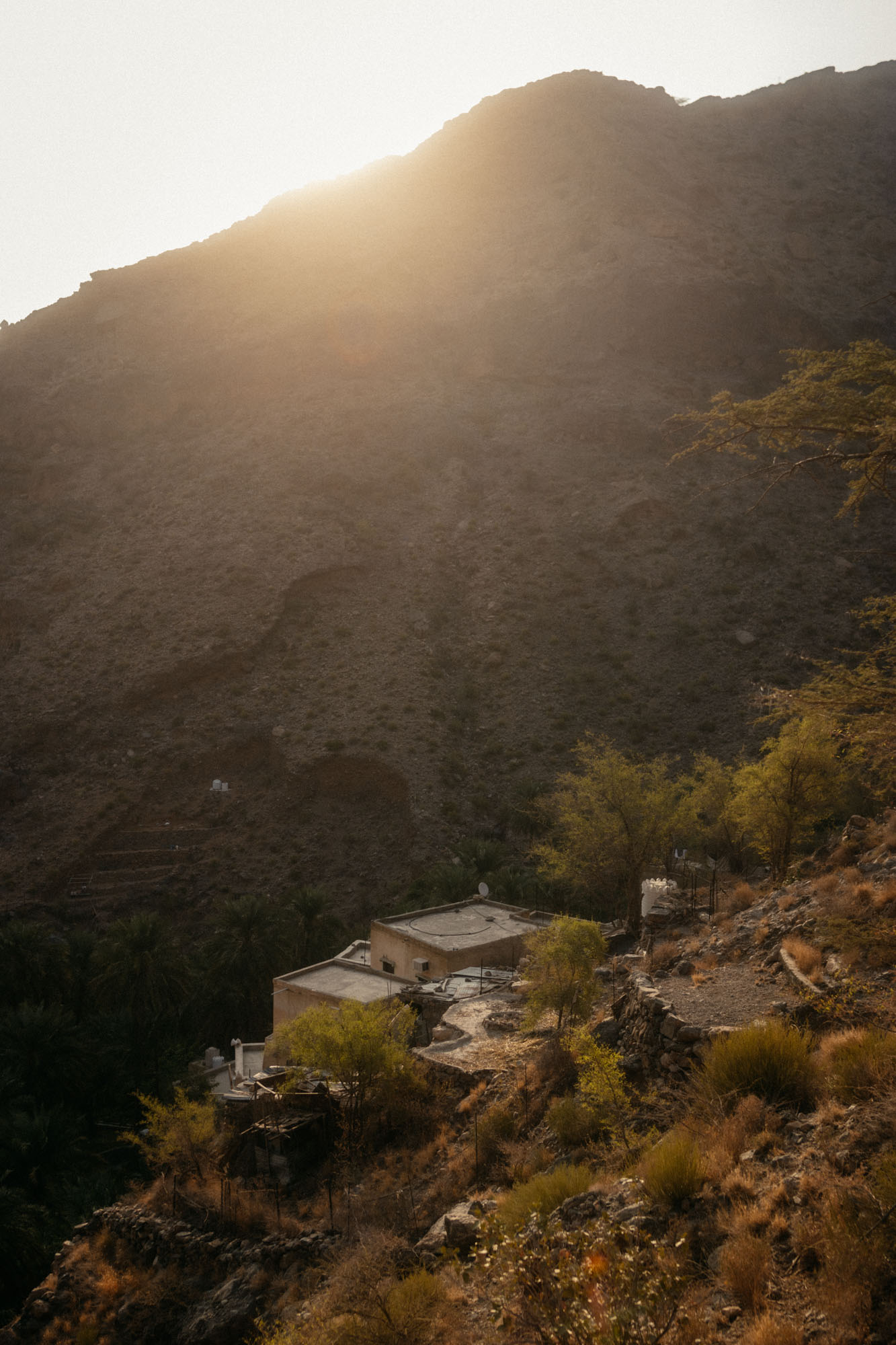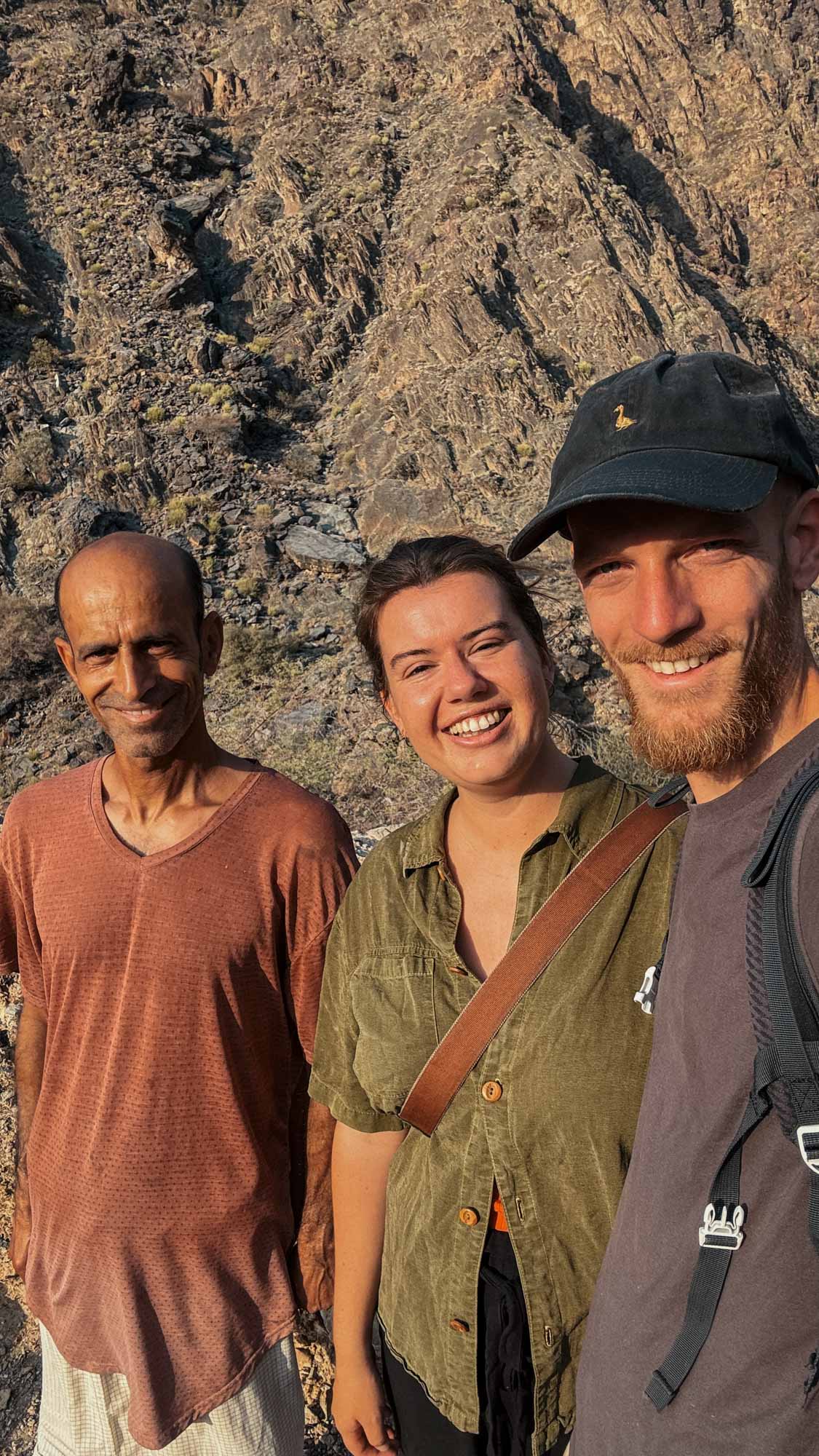 Wir steigen weiter den Berg hinauf, Saleh ist schnell und flink. Er zeigt auf Wege an entfernten Berghängen und erklärt uns, innerhalb von 3,5h wäre er locker bis nach Misfah al Abreeyn auf der anderen Seite der doch sehr hohen Berge gelaufen. Wir sind beeindruckt von ihm und von der Aussicht aufs Dorf.