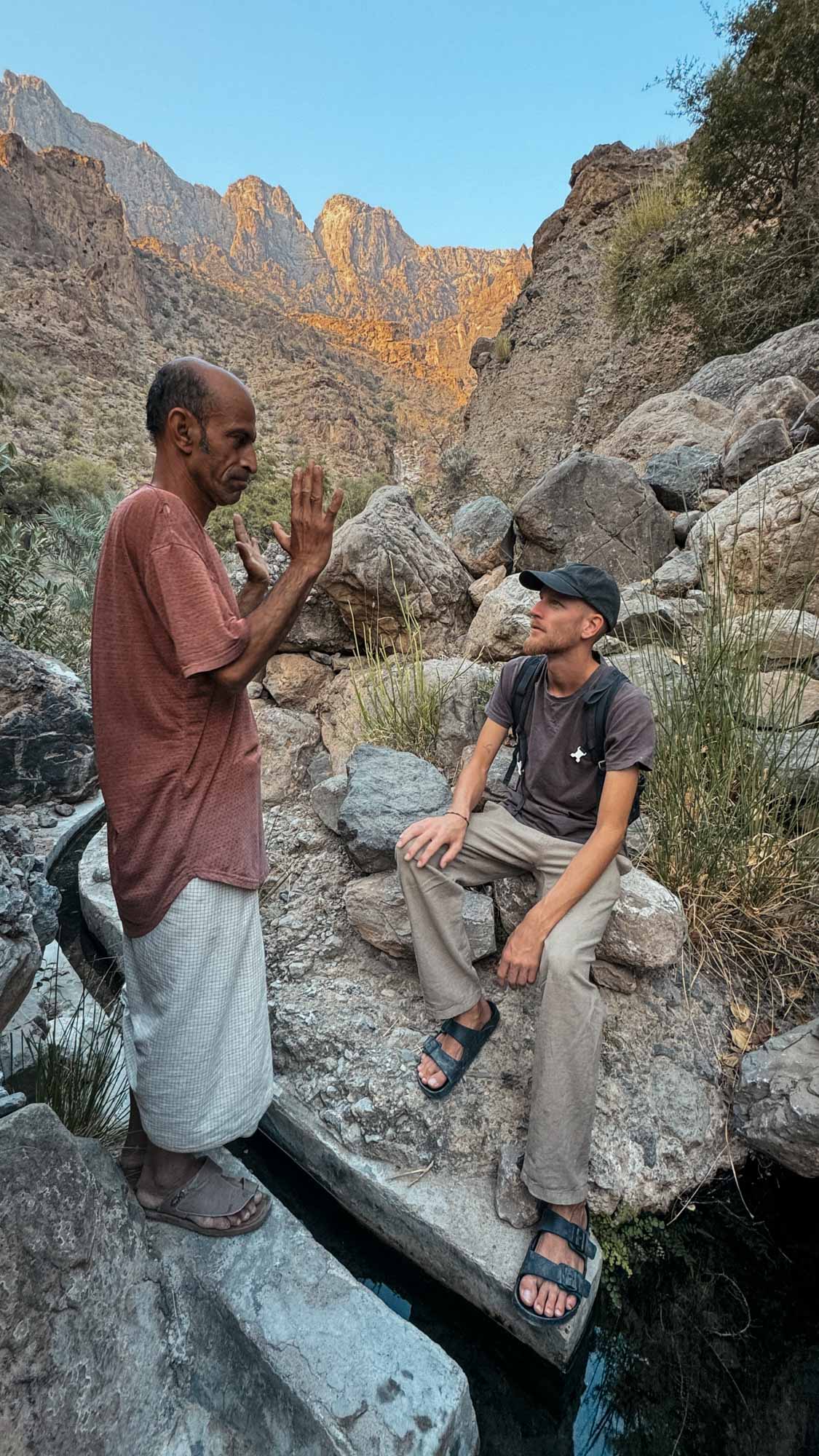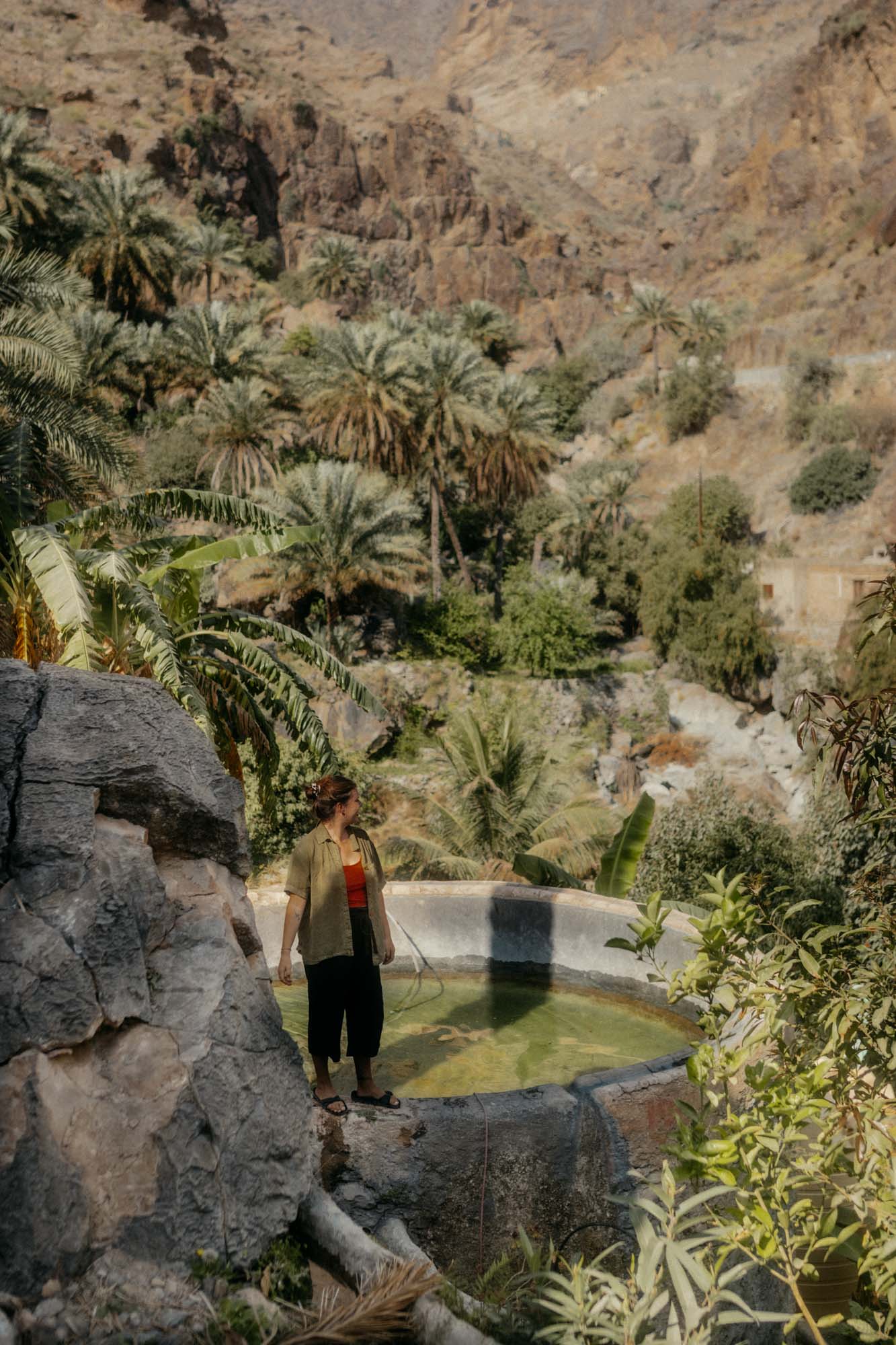 Wir laufen planlos zwischen den Palmenhainen umher und halten die Augen offen nach Wasser. Nicht nach den zu unseren Füßen plätschernden Falajs, sondern nach etwas Größerem: einem Wasserfall und irgendwo hier muss doch noch dieser instagrammy Pool sein?